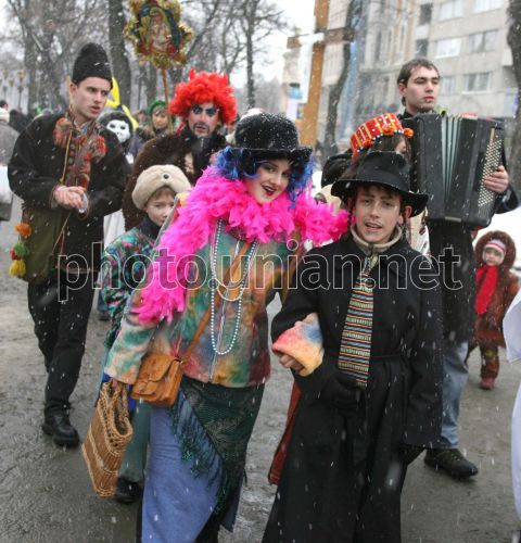 Колядники идут по одной из Львовских улиц, во вторник, 8 января 2008 г. Во Львове начался фестиваль рождественских колядок "Спалах Різдвяної зорі". Участие в фестивале принимают взрослые и дети. Коляда - славянский праздник зимнего сонцеворота, который приходится на 25 декабря. Коляда проходит с 7 по 19 января. Этот праздник еще называют Даждьбожий день или Карачун. Фото УНИАН