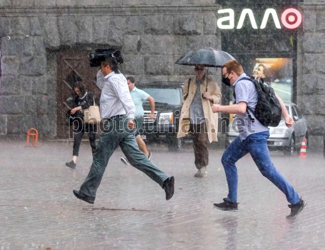 Люди под дождем, в Киеве, 27 августа 2020 г. Фото УНИАН