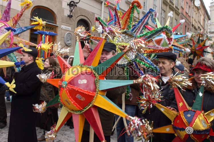 Участники праздничного шествия колядуют в центре Львова, во вторник, 8 января 2008 г. Во Львове начался фестиваль рождественских колядок ”Спалах Різдвяної зорі”. Участие в фестивале принимают взрослые и дети. Коляда - славянский праздник зимнего сонцеворота, который приходится на 25 декабря. Коляда проходит с 7 по 19 января. Этот праздник еще называют Даждьбожий день или Карачун. Фото УНИАН