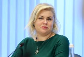 Модератор, руководитель «Первая городская Школа ОСМД», руководитель пресс-центра УНИАН Ирина Головатенко во время круглого стола на тему: «Итоги сотрудничества местной власти с Проектом ЕС/ПРООН HOUSES в Киеве. Создание ОСМД - совместные действия», в УНИАН, в Киеве, 29 сентября 2020 г. Фото Ратынский Вячеслав / УНИАН