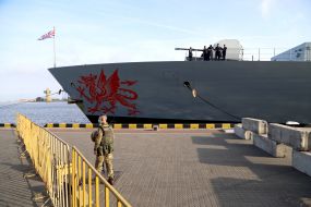 Эсминец Королевских ВМС Великобритании "Dragon", в Одесском морском порту, 7 октября 2020 г. Одесский морской порт в рамках дружественного визита прибыл эсминец Королевских ВМС Великобритании Dragon. Визит корабля продлится до 12 октября. Эсминец Dragon (D35) вошел в состав флота в начале 2012 года. На каждой стороне его корпуса изображен валлийский дракон Y Ddraig Goch - национальный символ Уэльса. Это единственный корабль королевского флота, украшенный таким образом.
