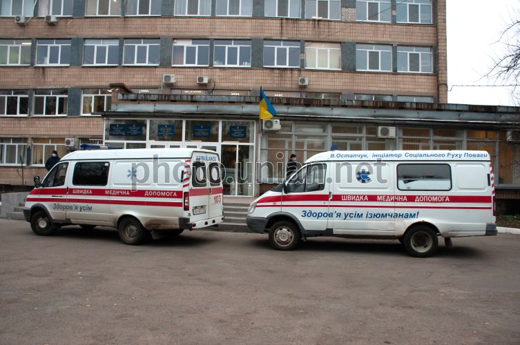 Автомобили скорой помощи перевозят в районные больницы приобретенные Харьковской обладминистрацией кислородные концентраторы