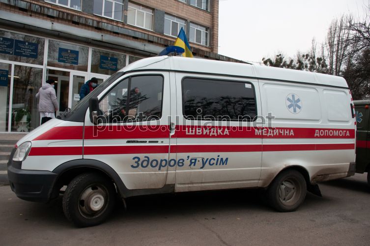 Автомобили скорой помощи перевозят в районные больницы приобретенные Харьковской обладминистрацией кислородные концентраторы