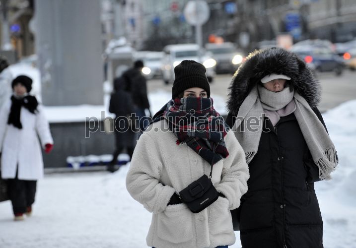 Люди на заснеженной улице, в Киеве, 13 февраля 2021 г. С 8 февраля Киев засыпает снегом. Киев из-за снегопада сковали пробки. Фото Чузавков Сергей / УНИАН