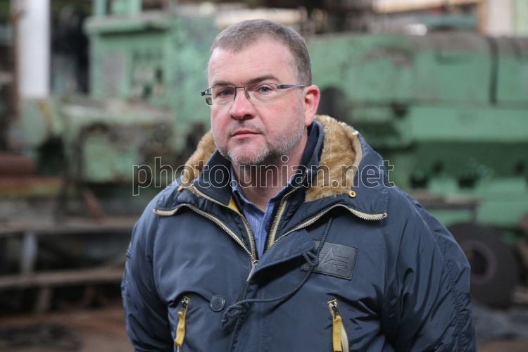 И.о. председателя правления АО "ПКМЗ" Леонид Крупник во время пресс-тура на АО "Первый киевский машиностроительный завод" (Завод "Большевик"), в Киеве, 17 февраля 2021 г. В этот день на завод "Большевик" состоялся пресс-тур с участием заместителя Председателя Фонда государственного имущества Тараса Елейко и и.о. председателя правления АО "ПКМЗ" Леонида Крупника. Фото Ковальчук Виктор / УНИАН