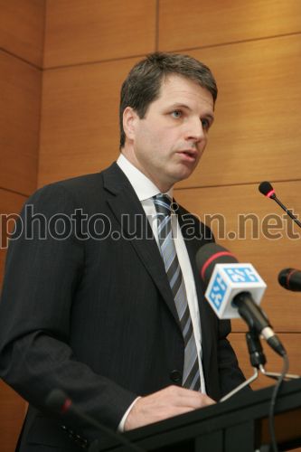 Руководитель дирекции по развитию международного розничного банкинга ”Credit Agricole S.A.” Марк Карлос на пресс-конференции в Киеве в пятницу, 15 февраля 2008 г. Пресс-конференция была посвящена 15-летию ”ИНДЭКС-БАНК”. Фото УНИАН