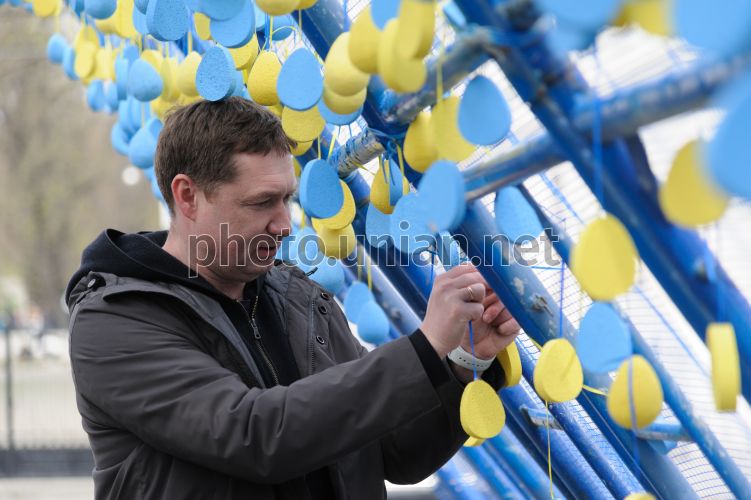 Акция ''Коридор жизни'' в сквере ''На Валах'' во Львове, 15 апреля 2022 г. Во время войны Украины с оккупантами, так называемые, "зеленые коридоры" обещаные оккупантами в Иловайске, Краматорске, Мариуполе, Изюме, обернулись ужасающими расстрелами и убийствами сотен невинных украинцев. Концепция инсталляции апеллирует к почтению памяти погибших украинских военных и гражданских. Фото Тыс Николай / УНИАН