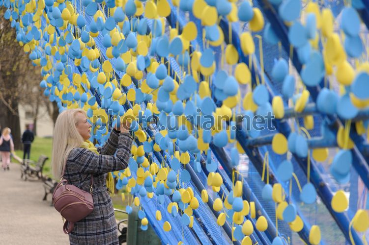 Акция ''Коридор жизни'' в сквере ''На Валах'' во Львове, 15 апреля 2022 г. Во время войны Украины с оккупантами, так называемые, "зеленые коридоры" обещаные оккупантами в Иловайске, Краматорске, Мариуполе, Изюме, обернулись ужасающими расстрелами и убийствами сотен невинных украинцев. Концепция инсталляции апеллирует к почтению памяти погибших украинских военных и гражданских. Фото Тыс Николай / УНИАН