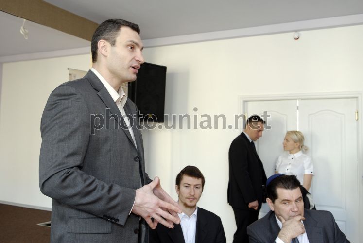 Депутат Киеврады Виталий Кличко проводит открытый урок для учеников одной из киевских школ, в пятницу, 21 марта 2008 г. Фото Павла Терехова / УНИАН