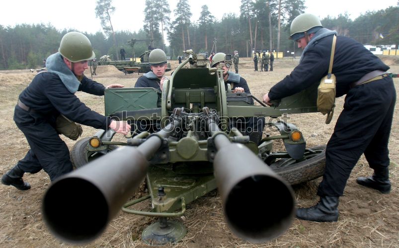 Курсанты готовят к стрельбе 23-миллиметровую зенитную спаренную установку ЗУ-23 на полигоне 169-го учебного центра Сухопутных войск Вооруженных сил Украины ”Десна” в Черниговской обл. в понедельник, 24 марта 2008 г. Фото Александра Синицы / УНИАН