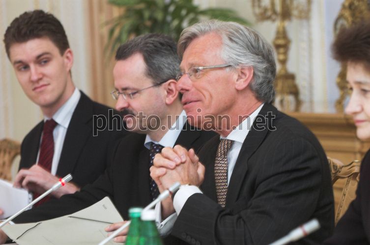 Верховный Комиссар ОБСЕ по делам национальных меньшинств Кнут Воллебек, справа, во время встречи с председателем ВР Арсением Яценюком в Киеве, в пятницу, 28 марта в 2008 г. Фото Анастасии Сироткиной / POOL / УНИАН
