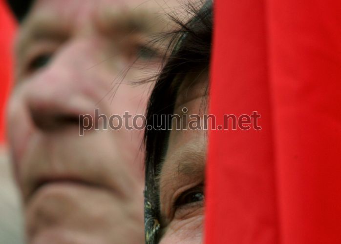 Противники приезда Президента США Джорджа Буша в Украину во время акции протеста «Украина против НАТО» в Киеве, в понедельник, 31 марта 2008 г. Фото Сергея Светлицкого / УНИАН