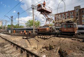 Эксперт собирает обломки, оставшиеся после взрыва российской ракеты С-300 в горловине станции "Харьков-пассажирский" , 14 мая 2023 г. В ночь на 14 мая от взрыва российской ракеты С-300 разрушено железнодорожное полотно на станции "Харьков-пассажирский", а также повреждены окружающие постройки, в том числе и здание студенческого общежития Академии железнодорожного транспорта. Фото Мариенко Андрей / УНИАН