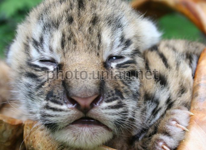 Новорожденный тигренок в ялтинском зоопарке ”Сказка” в понедельник, 21 апреля 2008 г. Ялтинский зоопарк пополнился новыми питомцами — здесь родились три амурских тигренка. Тройня появилась на свет 16 апреля у пары амурских тигров Яны и Улара. Рождение этих малышей — значительное событие не только для зоопарка, ведь амурский тигр — очень редкое животное, находящееся под угрозой исчезновения. Так, в настоящее время в мире насчитывается всего несколько сотен амурских тигров. В зоопарках нашей страны до рождения малышей было 14 амурских тигров, семеро из них жили в Ялте. Фото Алексея Сувирова / УНИАН