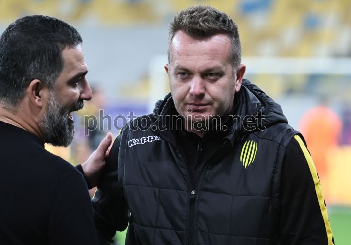 Главный тренер ФК "Шахтер" (Донецк) Арда Туран и главный тренер ФК "Рух" (Львов) Иван Федик во время матча 7-го тура Чемпионата Украины по футболу среди команд УПЛ (Премьер-Лига) сезона 2025/2026 между ФК «Рух» (Львов) и ФК «Шахтер» (Донецк) на стадионе «Арена Львов» во Львове, 28 сентября 2025 г. Матч закончился со счетом 0:4 в пользу ФК "Шахтер" (Донецк). Фото Кравс Евгений / УНИАН