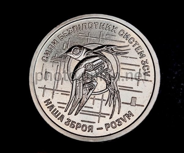 ФОТО С МОБИЛЬНОГО ТЕЛЕФОНА Новая оборотная памятная монета "Силы беспилотных систем ВСУ" во время презентации в здании НБУ в Киеве, 30 сентября 2025 г. Фото Синица Александр / УНИАН