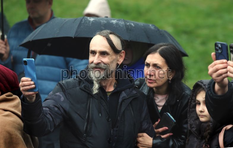 Зрители во время рыцарского турнира в День города, в Ирпене, 11 октября 2025 г. В турнире приняли участие команды из Львова, Черновцов, Луцка и Ирпеня. Свои соревнования реконструкторы посвятили битве русичей с золотоордынским нашествием, которое произошло у реки Ирпень в 1322 году и завершилось разгромом захватчиков. Фото Синица Александр / УНИАН