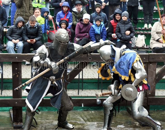 Рыцарский турнир в День города, в Ирпене, 11 октября 2025 г. В турнире приняли участие команды из Львова, Черновцов, Луцка и Ирпеня. Свои соревнования реконструкторы посвятили битве русичей с золотоордынским нашествием, которое произошло у реки Ирпень в 1322 году и завершилось разгромом захватчиков. Фото Синица Александр / УНИАН