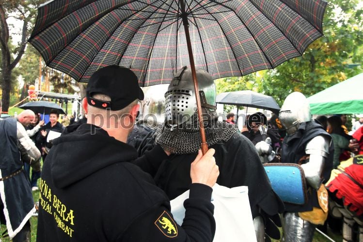 Участник рыцарского турнира в доспехах, в День города, в Ирпене, 11 октября 2025 г. В турнире приняли участие команды из Львова, Черновцов, Луцка и Ирпеня. Свои соревнования реконструкторы посвятили битве русичей с золотоордынским нашествием, которое произошло у реки Ирпень в 1322 году и завершилось разгромом захватчиков. Фото Синица Александр / УНИАН