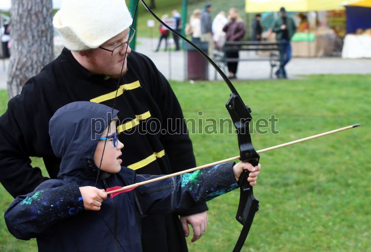 Соревнуются юные лучники, в День города, в Ирпене, 11 октября 2025 г. Изюминкой празднования Дня Ирпеня стал рыцарский турнир, в котором приняли участие команды из Львова, Черновцов, Луцка и Ирпеня. Свои соревнования реконструкторы посвятили битве русичей с золотоордынским нашествием, которое произошло у реки Ирпень в 1322 году и завершилось разгромом захватчиков. Фото Синица Александр / УНИАН