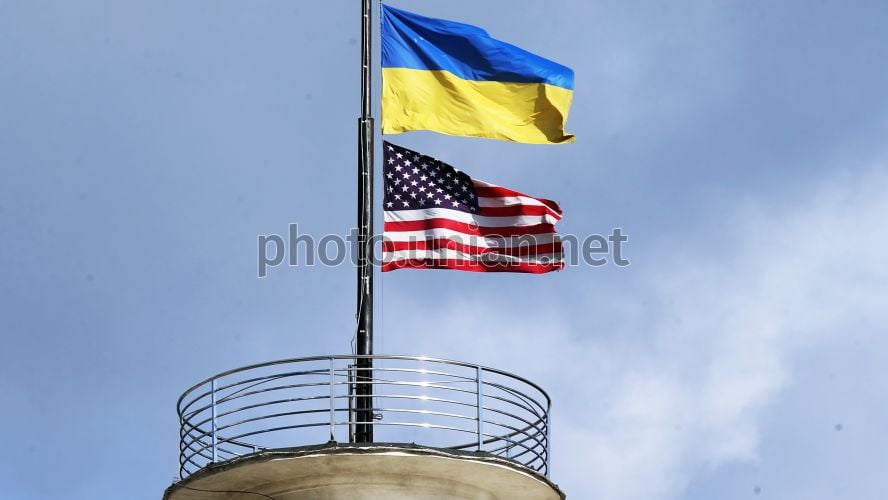 Флаги Украины и США в Киеве, 12 октября 2025 г. Фото Синица Александр / УНИАН