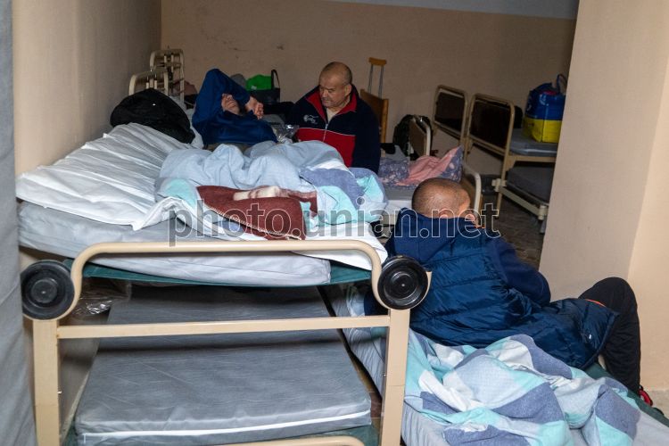 Пациенты в укрытии в больнице, возле которой попал российский КАБ, в Харькове, 13 октября 2025 г. В результате ударов РФ по Харькову вечером 13 октября был поврежден корпус медучреждения, в котором лечат людей с эндокринологическими болезнями, в частности сахарным диабетом. В больнице, возле которой попал российский КАБ, находилось более 100 пациентов. 51 пациент больницы испытал острую реакцию на стресс. Пациентов переместили в главный корпус больницы. Четверо больных получили ранения обломками стекла. Фото Мариенко Андрей / УНИАН