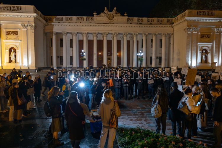 Участники акции против городского головы Геннадия Труханова у здания мэрии в Одессе, 14 октября 2025 г. 14 октября в Одессе у здания мэрии прошел митинг против мэра Геннадия Труханова. Около 150 человек вышли на центральную площадь, чтобы потребовать отстранения от должности и создания в городе военной администрации. Акцию организовала общественная организация "Делаем вам нервы". Участники держали плакаты с надписями "Вата не власть", "Одесса украинский город", "Труханова за решетку" и "Одесса без Пушкина". Участники акции подчеркивают, что готовы продолжать протест до тех пор, пока не будет реакции от государственных органов. Фото Гиманов Александр / УНИАН