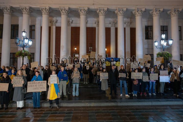 Участники акции против городского головы Геннадия Труханова у здания мэрии в Одессе, 14 октября 2025 г. 14 октября в Одессе у здания мэрии прошел митинг против мэра Геннадия Труханова. Около 150 человек вышли на центральную площадь, чтобы потребовать отстранения от должности и создания в городе военной администрации. Акцию организовала общественная организация "Делаем вам нервы". Участники держали плакаты с надписями "Вата не власть", "Одесса украинский город", "Труханова за решетку" и "Одесса без Пушкина". Участники акции подчеркивают, что готовы продолжать протест до тех пор, пока не будет реакции от государственных органов. Фото Гиманов Александр / УНИАН