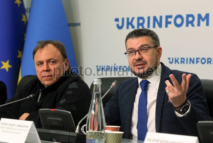 Директор Музея Шереметьевых Алексей Шереметьев и председатель Украинского института национальной памяти, майор запаса Александр Алферов во время презентации реконструкции тысячелетней украинской иконы, принадлежавшей сыну Владимира Святого черниговскому и тмутороканскому князю Мстиславу, в Киеве, 20 октября 2025 г. В Киеве презентовали научное открытие – реконструкцию тысячелетней украинской иконы, принадлежавшей сыну Владимира Святого черниговскому и тмутороканскому князю Мстиславу. Оригинал иконы не сохранился до настоящего времени. По-видимому, она была утеряна во время монгольского нашествия. Тем не менее, новые методы исторических исследований позволили полностью реконструировать икону, опираясь на источники. Икона представляет собой интересный образец иконописной школы средневекового украинского государства Руси. Этот проект откроет еще ряд утраченных икон, которые вскоре будут открыты с помощью новых исследований.Фото Синица Александр / УНИАН