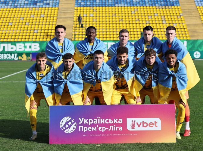 Игроки ФК «Рух» (Львов) перед началом матча 10-го тура Чемпионата Украины среди команд УПЛ по футболу (сезон 2025/26) между ФК «Карпаты» (Львов) и ФК «Рух» (Львов) на стадионе "Украина", 25 октября 2025 г. Матч закончился со счетом 0:0. Фото Кравс Евгений / УНИАН