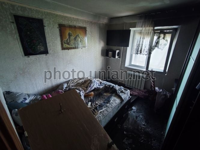 Поврежденная комната в жилом доме после ночной атаки дронами в Деснянском районе Киева, 26 октября 2025 г. В Деснянском районе Киева продолжаются аварийно-спасательные работы после российской атаки дронами. В результате попадания погибли три человека: 19-летняя девушка и ее 46-летняя мать, еще одно тело нуждается в идентификации. Фото Синица Александр / УНИАН