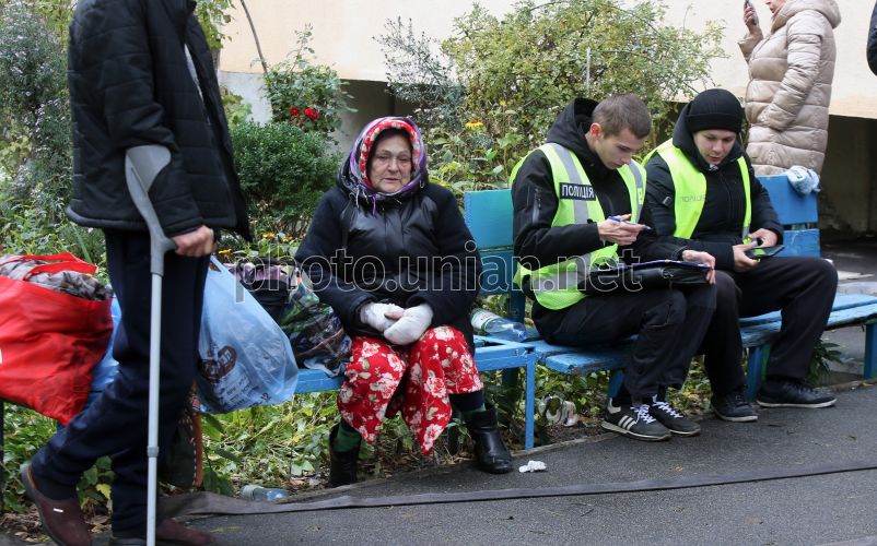 Пожилая жительница одной из уничтоженных квартир с обожженными руками сидит на скамейке возле поврежденного после ночной атаки дронами жилого дома в Деснянском районе Киева, 26 октября 2025 г. В Деснянском районе Киева продолжаются аварийно-спасательные работы после российской атаки дронами. В результате попадания погибли три человека: 19-летняя девушка и ее 46-летняя мать, еще одно тело нуждается в идентификации. Фото Синица Александр / УНИАН