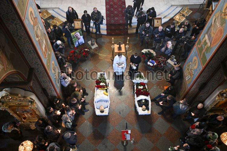 Церемония прощания с погибшими журналисткой и оператором телеканала FreeДом Еленой Губановой (творческий псевдоним - Елена Грамова) и Евгением Кармазиным в Михайловском соборе в Киеве, 27 октября 2025 г. Елена Губанова и Евгений Кармазин погибли от удара российского дрона в Краматорске. На прощание в Михайловском Златоверхом соборе собралось ориентировочно до 100 человек. Это родные, друзья и журналисты. Фото Ратынский Вячеслав / УНИАН