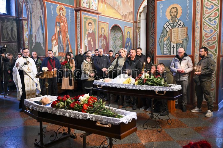 Церемония прощания с погибшими журналисткой и оператором телеканала FreeДом Еленой Губановой (творческий псевдоним - Елена Грамова) и Евгением Кармазиным в Михайловском соборе в Киеве, 27 октября 2025 г. Елена Губанова и Евгений Кармазин погибли от удара российского дрона в Краматорске. На прощание в Михайловском Златоверхом соборе собралось ориентировочно до 100 человек. Это родные, друзья и журналисты. Фото Ратынский Вячеслав / УНИАН