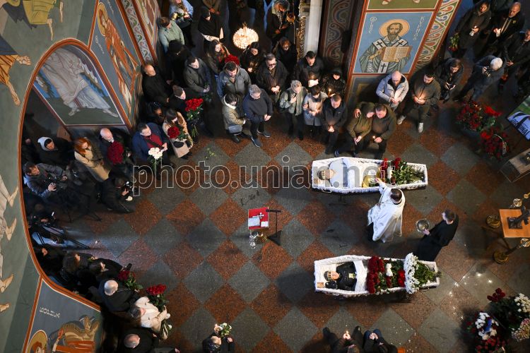 Церемония прощания с погибшими журналисткой и оператором телеканала FreeДом Еленой Губановой и Евгением Кармазиным в Киеве