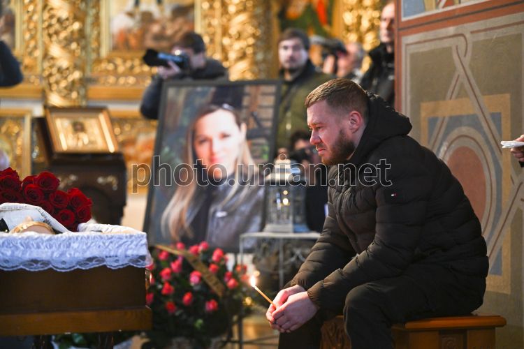 Церемония прощания с погибшими журналисткой и оператором телеканала FreeДом Еленой Губановой (творческий псевдоним - Елена Грамова) и Евгением Кармазиным в Михайловском соборе в Киеве, 27 октября 2025 г. Елена Губанова и Евгений Кармазин погибли от удара российского дрона в Краматорске. На прощание в Михайловском Златоверхом соборе собралось ориентировочно до 100 человек. Это родные, друзья и журналисты. Фото Ратынский Вячеслав / УНИАН