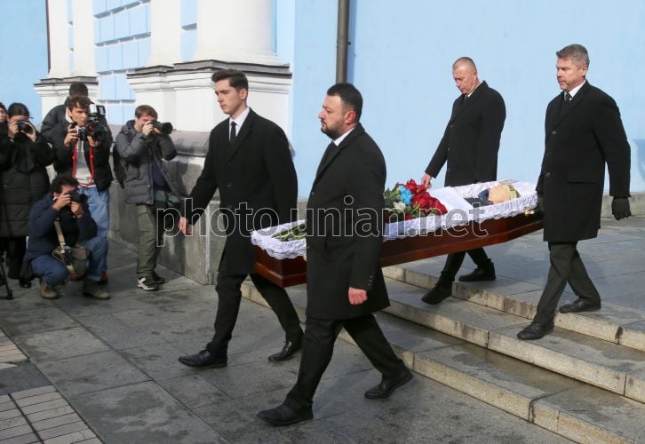 Церемония прощания с погибшими журналисткой и оператором телеканала FreeДом Еленой Губановой и Евгением Кармазиным в Киеве