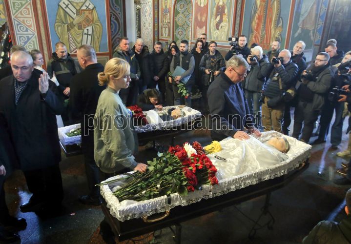 Церемония прощания с погибшими журналисткой и оператором телеканала FreeДом Еленой Губановой и Евгением Кармазиным в Киеве