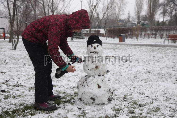 Мальчик лепит снеговика в парке в Киеве, 14 декабря 2025 г. Утром воскресенья, 14 декабря, столицу Украины засыпало первым снегом. Первый снег в столице начал падать еще около шести часов утра. Фото Ковальчук Виктор / УНИАН