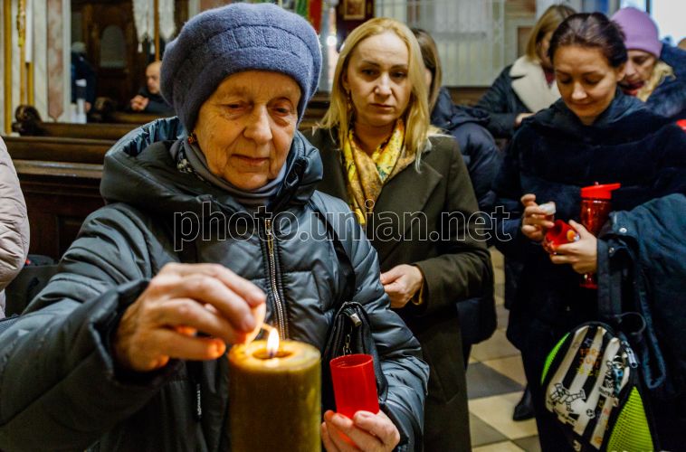 Греко-католические верующие забирают частицу Вифлеемского огня мира в свои дома