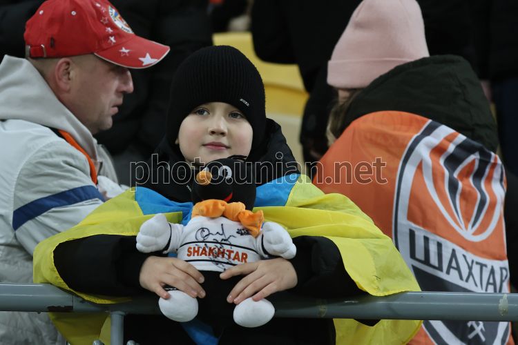 Болельщики на трибунах во время матча 16-го тура Чемпионата Украины среди команд УПЛ (Премьер-лига) по футболу (сезон 2025/26) между ФК "Шахтер" (Донецк) и ФК "Эпицентр" (Каменец-Подольский), во Львове, 14 декабря 2025 г. Матч закончился со счетом 5:0 в пользу ФК "Шахтер". Фото Кравс Евгений / УНИАН