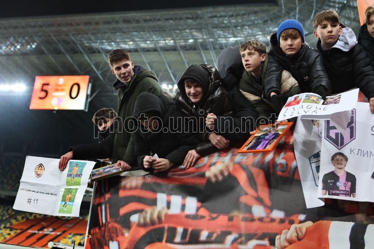 Болельщики на трибунах во время матча 16-го тура Чемпионата Украины среди команд УПЛ (Премьер-лига) по футболу (сезон 2025/26) между ФК "Шахтер" (Донецк) и ФК "Эпицентр" (Каменец-Подольский), во Львове, 14 декабря 2025 г. Матч закончился со счетом 5:0 в пользу ФК "Шахтер". Фото Кравс Евгений / УНИАН