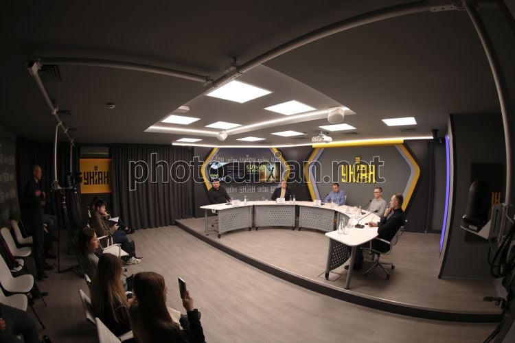 Генеральный продюсер UCH, председатель ОО УКРИКИНОФЕСТ Андрей Ногин, председатель Госкино Украины Андрей Осипов, президент Национального олимпийского комитета Украины, олимпийский чемпион Вадим Гутцайт, продюсер, член Правления Национальной Киноакадемии Александр Максимчук и кинорежиссер, лауреат премии Эмми, продюсер Владимир Мула во время пресс-конференции, посвященной развитию украинского спортивного кино, в пресс-центре УНИАН в Киеве, 19 декабря 2025 г. Прессконференция с участием Президента Национального олимпийского комитета Украины и Председателя Государственного агентства Украины по кино была посвящена развитию украинского спортивного кино и перспективам сотрудничества между спортивной и кинематографической отраслями. В ходе мероприятия участники обсудили роль спортивного кино как важного культурного продукта, который формирует национальные ценности, популяризирует спорт, демонстрирует силу характера, выносливость, взаимоподдержку и преодоление личных вызовов. Фото Ковальчук Виктор / УНИАН