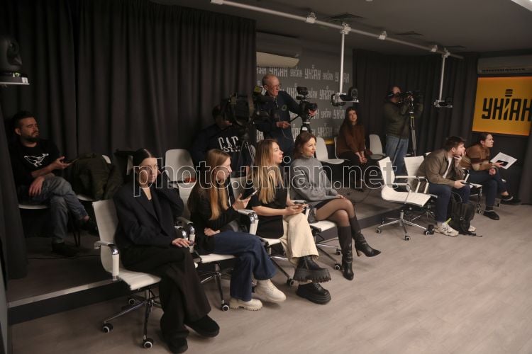 Журналисты во время пресс-конференции, посвященной развитию украинского спортивного кино, в пресс-центре УНИАН в Киеве, 19 декабря 2025 г. Прессконференция с участием Президента Национального олимпийского комитета Украины и Председателя Государственного агентства Украины по кино была посвящена развитию украинского спортивного кино и перспективам сотрудничества между спортивной и кинематографической отраслями. В ходе мероприятия участники обсудили роль спортивного кино как важного культурного продукта, который формирует национальные ценности, популяризирует спорт, демонстрирует силу характера, выносливость, взаимоподдержку и преодоление личных вызовов. Фото Ковальчук Виктор / УНИАН
