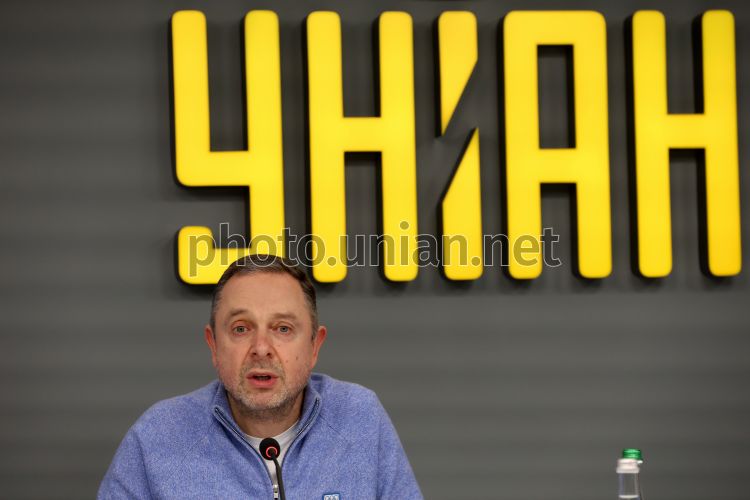 Президент Национального олимпийского комитета Украины, олимпийский чемпион Вадим Гутцайт во время пресс-конференции, посвященной развитию украинского спортивного кино, в пресс-центре УНИАН в Киеве, 19 декабря 2025 г. Прессконференция с участием Президента Национального олимпийского комитета Украины и Председателя Государственного агентства Украины по кино была посвящена развитию украинского спортивного кино и перспективам сотрудничества между спортивной и кинематографической отраслями. В ходе мероприятия участники обсудили роль спортивного кино как важного культурного продукта, который формирует национальные ценности, популяризирует спорт, демонстрирует силу характера, выносливость, взаимоподдержку и преодоление личных вызовов. Фото Ковальчук Виктор / УНИАН