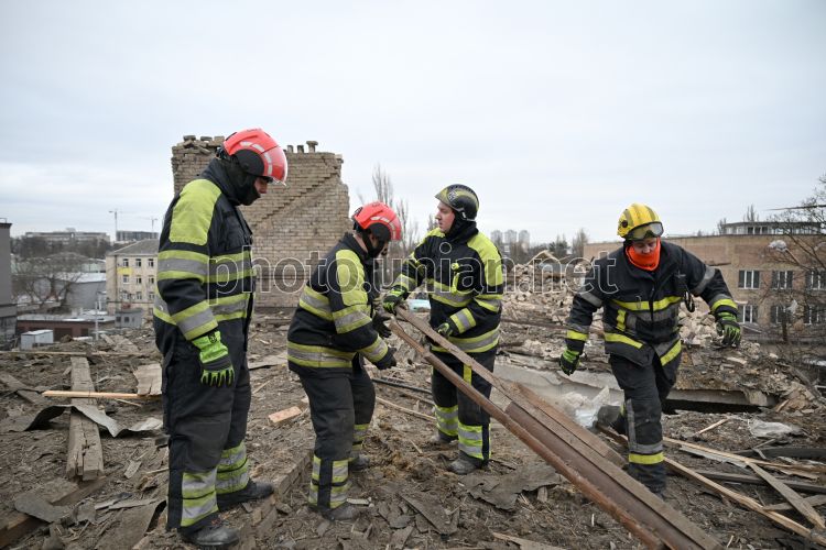 Последствия российского обстрела Киева, 27 декабря 2025 г. В ночь на 27 декабря российские войска нанесли массированный комбинированный удар по Киеву. Повреждения фиксируют в 7 районах. В нескольких районах возникли пожары в жилых домах. Известно об одном погибшем, 28 пострадавших, среди которых двое детей. Фото Ратынский Вячеслав / УНИАН