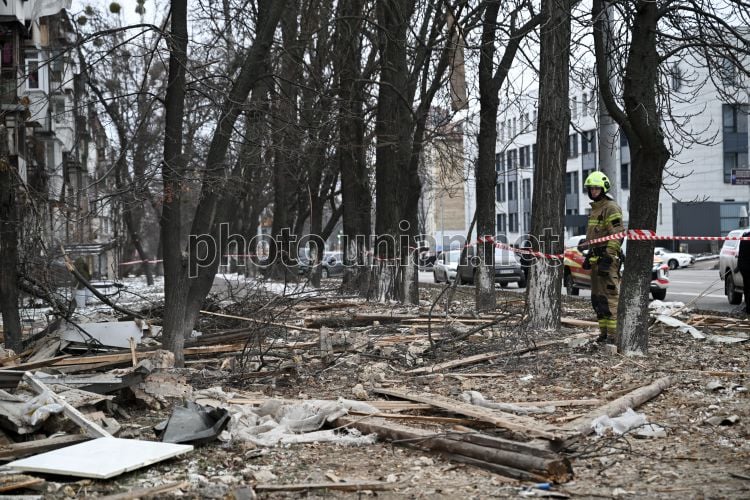 Последствия российского обстрела Киева, 27 декабря 2025 г. В ночь на 27 декабря российские войска нанесли массированный комбинированный удар по Киеву. Повреждения фиксируют в 7 районах. В нескольких районах возникли пожары в жилых домах. Известно об одном погибшем, 28 пострадавших, среди которых двое детей. Фото Ратынский Вячеслав / УНИАН