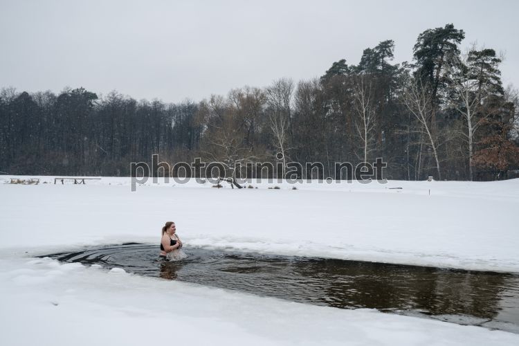 Купание во время празднования Крещения Господня в озере Горащиха на территории парка «Пуща-Водица», на западной окраине поселка Пуща-Водица, 6 января 2025 г. Фото Ратынский Вячеслав / УНИАН