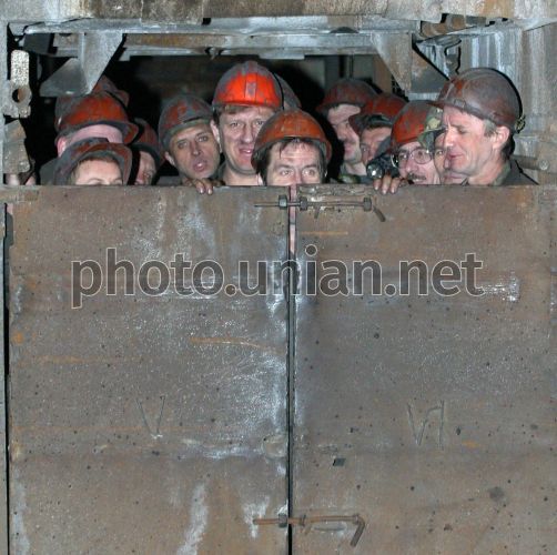 FILE Шахтеры готовятся к спуску в забой на шахте им. М.И. Калинина, в Донецке, в пятницу, 27 февраля 2004 г. Шахта им. М. И. Калинина начала свою деятельность в августе 1961 г. В 1965 г. шахта вышла на проектную мощность 1,2 млн. тонн угля в год и в течение 25 лет работала на уровне проектной мощности и выше. Максимальный уровень добычи угля по шахте достигнут в 1974г. - 1,4 млн. тонн в год, производительность труда рабочего по добыче угля при этом составила 43,6 тонн. Фото УНИАН