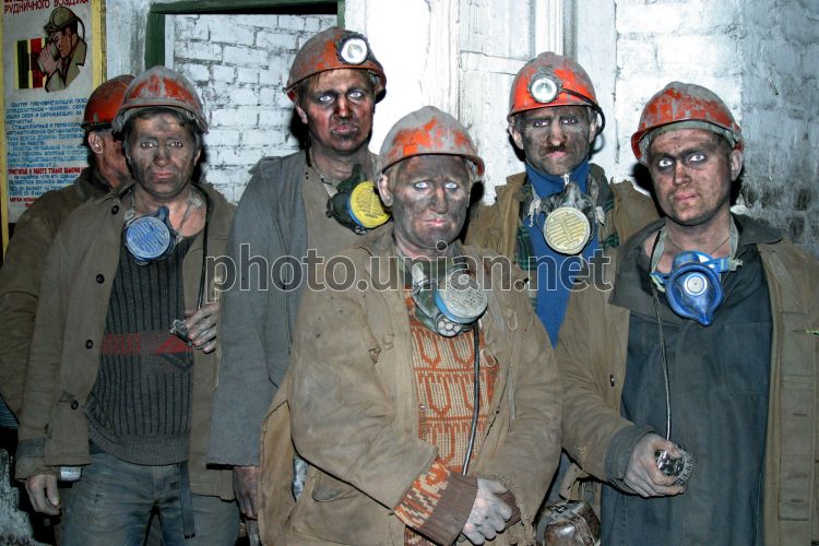 FILE Шахтеры после смены на шахте им. М.И. Калинина, в Донецке, в пятницу, 27 февраля 2004 г. Шахта им. М. И. Калинина начала свою деятельность в августе 1961 г. В 1965 г. шахта вышла на проектную мощность 1,2 млн. тонн угля в год и в течение 25 лет работала на уровне проектной мощности и выше. Максимальный уровень добычи угля по шахте достигнут в 1974г. - 1,4 млн. тонн в год, производительность труда рабочего по добыче угля при этом составила 43,6 тонн. Фото УНИАН